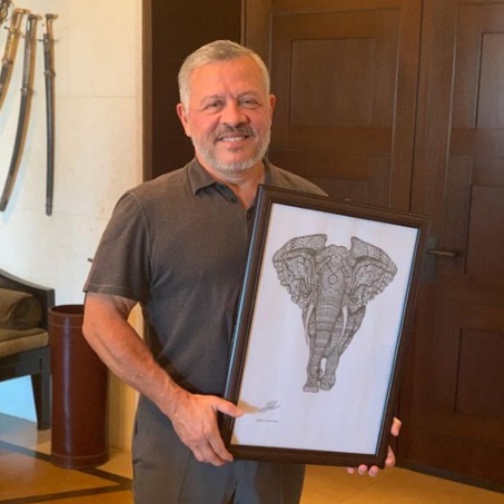 عمان1:نشر جلالة الملك عبدالله الثاني تغريدة على حسابه عبر تويتر، صورة وهو يحمل هدية عبارة عن لوحة فنية من فتاة قدمتها لجلالته.