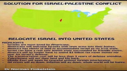 عمان1:اقترح الباحث والمناضل الأميركي البروفسور نورمان فنكلستاين أنّ على أميركا منح اليهود أرضاً داخل إحدى ولاياتها وبذلك تحل الكثير من الأمور المعقدة. في الصورة خريطة أميركا وداخلها تصور فنكلستاين حجم دولة اسرائيل داخلها. وشرح أنّ الأمر سهلاً لأنّ الشعب الأميركي يحب الاسرائيليين والأمي...