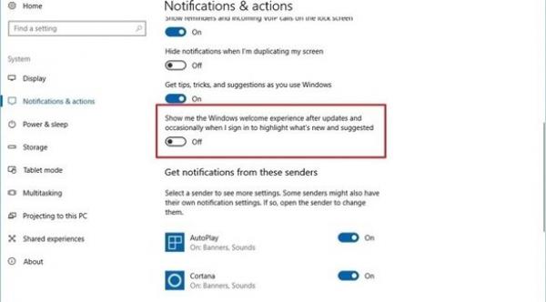 ويمكن إيقاف هذا الإجراء عن طريق الإعدادات في نطاق “System” تحت بند “Notifications & actions”، ويلزم ضبط زرين على الوضع Off، هما: