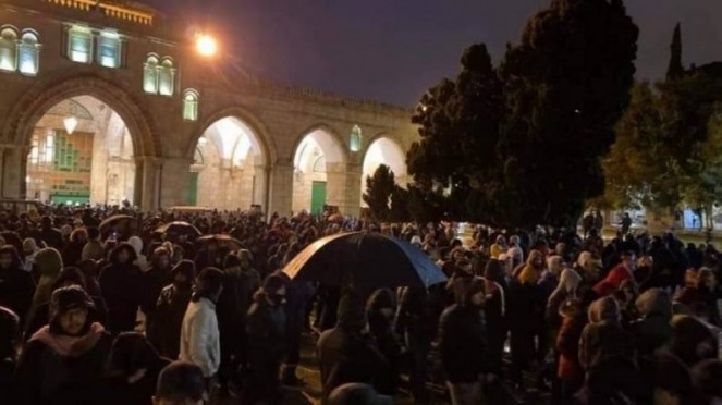 الالاف يلبون نداء الفجر العظيم في الاقصى
