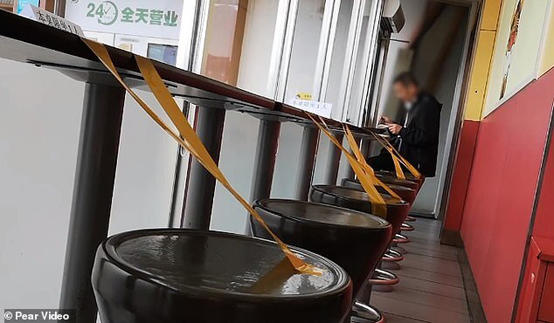 وأطلقت المطاعم في جميع أنحاء الصين سياسة "شخص واحد لكل طاولة" لمنع انتشار الفيروس التاجي بعد أن بدأ المواطنون في مغادرة منازلهم والعودة إلى العمل. وشوهد متجر للمعكرونة وهو يستغل مقاعد الطاولات لمنع الزبائن من الجلوس بجانب بعضهم البعض في ناننينغ بمقاطعة قوانغشي بجنوب الصين. و ذلك بعد إعادة فتح مطعم الحجر الصحي مؤخرا.