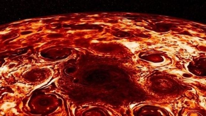 وتدرس المركبة الفضائية "جونو" الكوكب الضخم منذ عام 2011، وأرسلت مؤخرا صورة لأعاصير دوامة حمراء في منطقة القطب الشمالي.