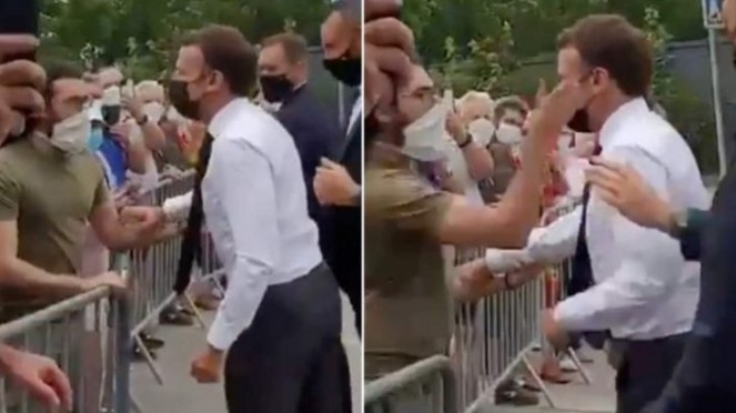 وأظهرت مقاطع مصورة حققت انتشارا كاسحا حول العالم، مهاجم ماكرون وهو يصفع خد الرئيس الأيسر، وحراسه الشخصيين يدفعون الرجل بعيدا خلال لقاء وتحية سريعة مع أفراد من الجمهور، الذين تم إبقاؤهم خلف حواجز مرور في بلدة صناعة النبيذ "تاين إل هيرميتاغ".