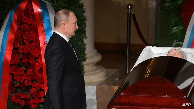 وعند النعش المفتوح، التقط بوتين حزمة من الورود، ووضعها في قاع التابوت، ثم رسم علامة الصليب. لم يكن هناك حراس مسلحون يقفون بجانب التابوت عندما اقترب من النعش، بحسب الصحيفة.