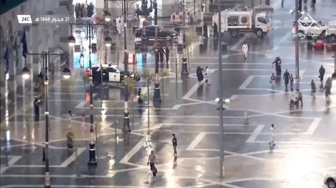 عمان1:هطلت أمطار غزيرة اليوم الجمعة ، على المسجد النبوي الشريف بالمدينة المنورة، إضافة إلى مناطق أخرى في المملكة العربية السعودية.