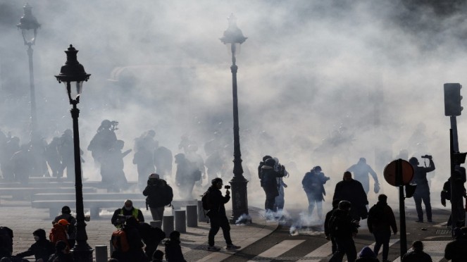 في العاصمة، اقتحم محتجون لفترة وجيزة مقر شركة LVMH للمنتجات الفاخرة في جادة الشانزليزيه مستخدمين قنابل دخانية.