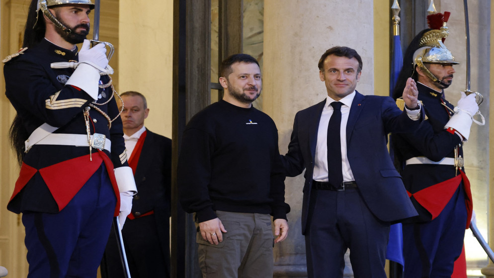 عمان 1 : دعا الرئيس الفرنسي إيمانويل ماكرون ونظيره الأوكراني فولوديمير زيلينسكي إلى زيادة الضغط على روسيا بفرض "عقوبات جديدة"، بحسب بيان مشترك صدر عن البلدين بعد محادثاتهما مساء الأحد في باريس.