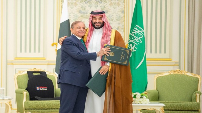 والاتفاقية التي وقعها ولي العهد الأمير محمد بن سلمان بن عبد العزيز آل سعود، ورئيس وزراء باكستان محمد شهباز شريف، تنص على أن أي اعتداء على أي من البلدين هو اعتداء على كليهما.
