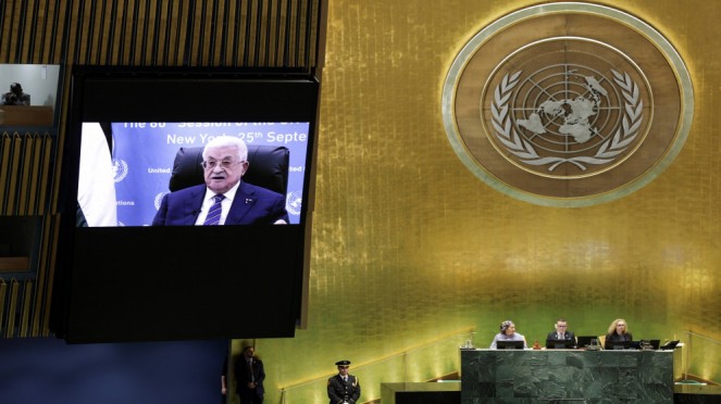 وخاطب عباس، ملوك ورؤساء وقادة العالم، في الدورة الثمانين للجمعية العامة للأمم المتحدة في نيويورك، في كلمة مسجلة، الخميس، "نريد أن نعيش بحرية وأمن وسلام كبقية شعوب الأرض، في دولة مستقلة ذات سيادة على حدود 1967، وعاصمتها القدس الشرقية، في أمن وسلام مع جيراننا".