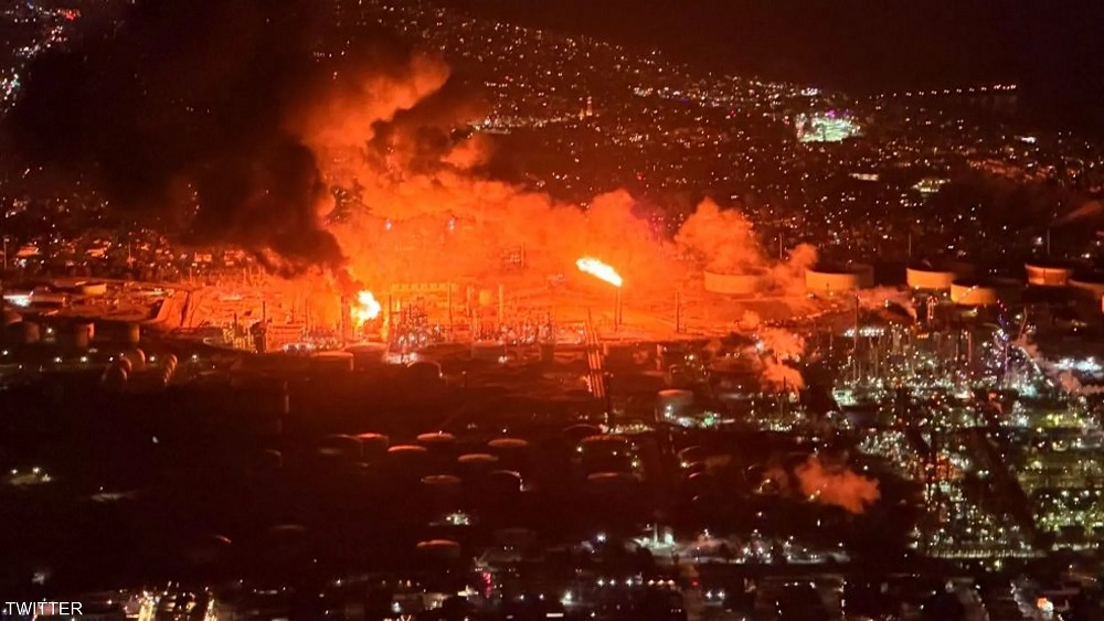 شاهد بالفيديو: حريق ضخم يلتهم مصفاة نفط في لوس أنجلوس