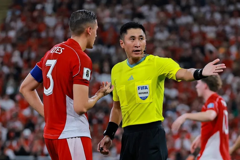 عمان1:شهدت نهاية مباراة منتخبي العراق وإندونيسيا في ملحق التصفيات الآسيوية المؤهلة إلى كأس العالم 2026، تصرفا صادما أقدم عليه أحد أفراد الطاقم الإداري للمنتخب الإندونيسي، بحق الحكم الصيني ما نينغ.