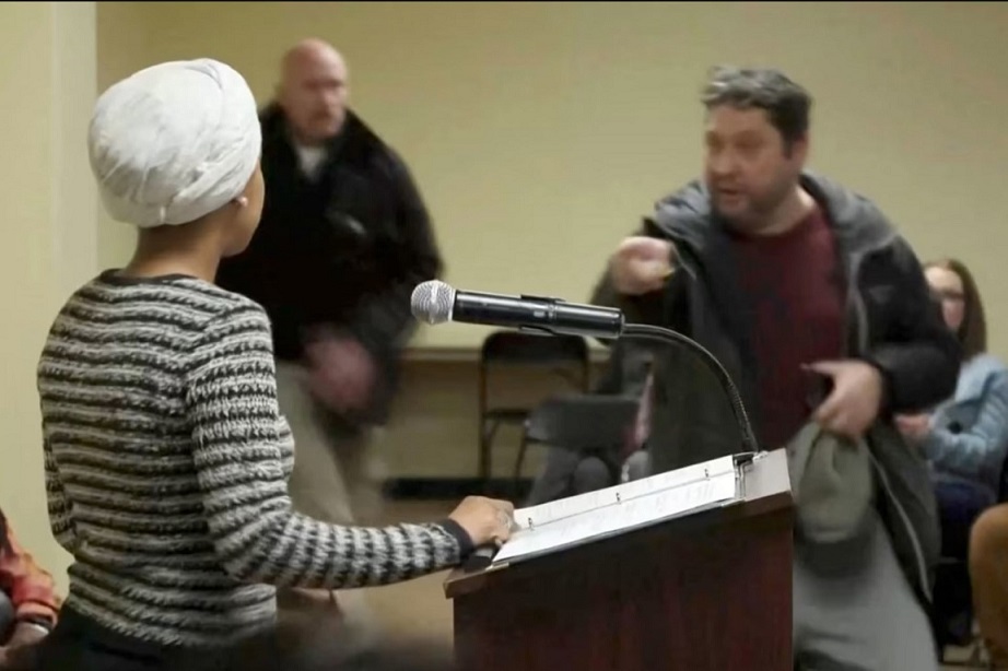 وأظهر فيديو بثه موقع نيويورك تايمز إلهان عمر، التي تمثل جزءا من ولاية مينيسوتا، وهي تلقي كلمة خلال اجتماع عام عندما اندفع نحوها رجل كان يجلس مباشرة أمام المنصة ورشها بسائل ذي رائحة نفاذة، قبل أن يسيطر عليه رجال الأمن ويخرجوه من القاعة.