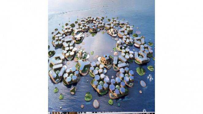 وناقش الخبراء طرحا توضيحيا لمدينة عائمة، تحتوي على مجموعة كبيرة من المنصات المائية مسدسة الأضلاع، بحيث تكون كل منها قادرة على استيعاب 300 ساكن تقريبا. كما ستصمم تلك المنصات لتحمل كافة الكوارث الطبيعية، كالفيضانات والتسونامي والأعاصير الشديدة.