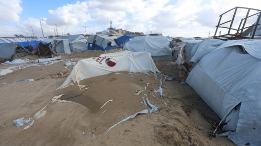 رياح قوية وأمطار غزيرة تقتلع وتغرق خيام النازحين في غزة