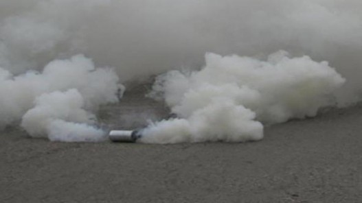 طفلان فلسطينيان يلقيان قنبلة مسيلة للدموع على طابور مدرسي