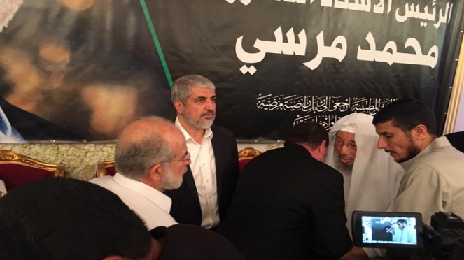 القرضاوي ومشعل في بيت عزاء مرسي بالدوحة