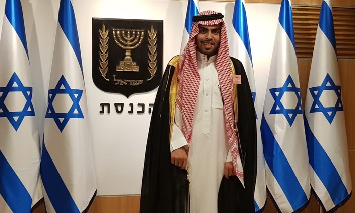المذيع الإسرائيلي جاكي خوجي قال إن "هذا الناشط تعود أصول عائلته إلى أحد فروع العائلة المالكة، وقد حصل على فيزا لزيارة إسرائيل بموافقة السلطات السعودية، التي باركت وصوله لإسرائيل، رغم أنه يعلم بتعرضه لهجمات من النشطاء الفلسطينيين والعرب على شبكات التواصل".