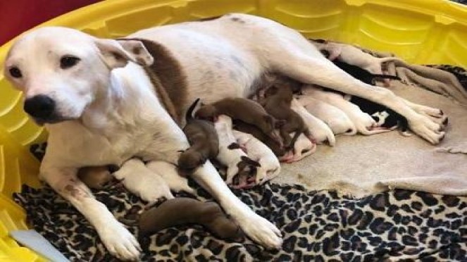 وانتشل مسؤولو حماية الحيوانات الكلبة، وهي من نوع لابرادور هجين، وجراءها من أحد شوارع المدينة يوم 30 تموز الماضي قبل أن يُجري لها أحد الأطباء البيطريين عملية ولادة قيصرية عاجلة. حسبما أفادت وكالة "رويترز".