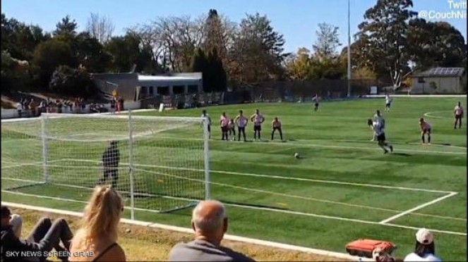 عمان1:شهدت إحدى مباريات كرة القدم في دوري الهواة بأستراليا هدفا غريبا وطريفا في الوقت نفسه، مما خلف موجة من التعليقات الساخرة.