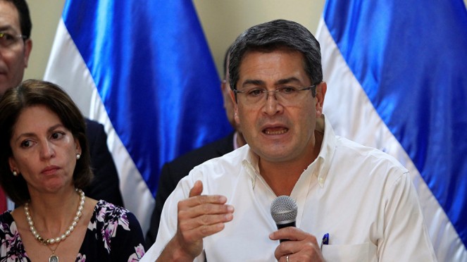 وفي كلمته في الجمعية العامة للأمم المتحدة في 25 أيلول/سبتمبر، دان رئيس هندوراس الذي أعيد انتخابه في 2017 "حملة تشهير يشنها محهربو مخدرات وعصابات وأشخاص فاسدون وقتلة وحتى سياسيون".