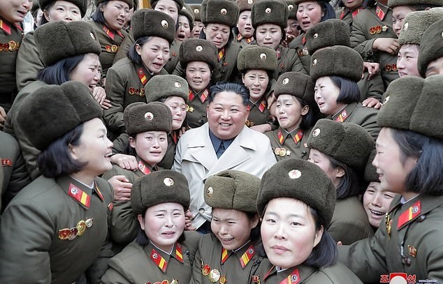 وتجمعت النساء بزيهن الموحد وقصات شعورهن المتطابقة حول القائد، وهو يبتسم للكاميرات في الصورة التي نشرتها وكالة الأنباء المركزية الكورية الشمالية الرسمية.