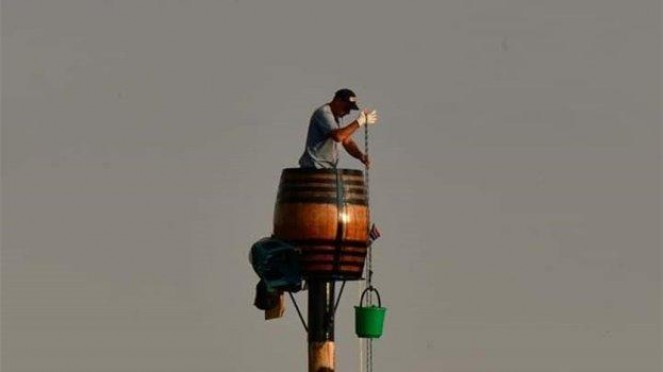 عمان 1 : يعيش المواطن الإفريقي فيرنون كروغر(52 عاماً) منذ 73 يوماً على التوالي داخا برميل على ارتفاع 25 متراً عن الأرض.