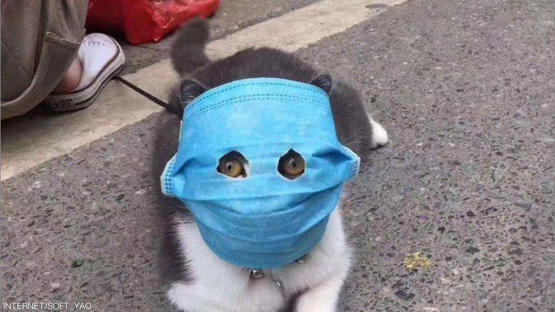 وتعرض صور نشرت على موقع التواصل الاجتماعي الصيني "ويبو"، القطط ترتدي الكمامات الواقية، حيث يقوم أصحاب الحيوانات الأليفة بثقبها في أماكن العيون، بينما يظل باقي الوجه مغطى.