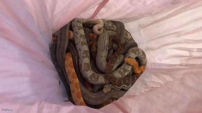 وتم إنقاذ الأفاعي من قبل الجمعية الملكية لحقوق الحيوانات في إنجلترا، وتم نقلهم إلى الأطباء البيطريين.