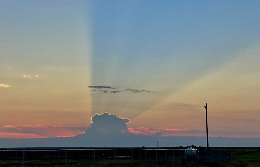 هذه العاصفة الرعدية وفقاً لبيان مكتب الهيئة الوطنية للأرصاد الجوية، تسببت في حجب شروق الشمس المذهل في ولاية كانساس في مشهد مثير في السماء.