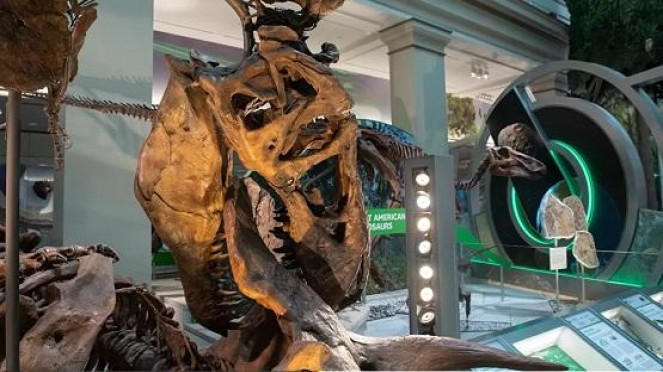 مزاد على هيكل عظمي لديناصور في نيويوروك