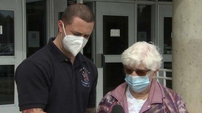 الحفيد، مايك ريشن، ابن الـ28 عاما، يعمل كمسعف طبي مع إدارة الإطفاء في مقاطعة مونتغومري، ويشارك في حملة تطعيم، حقن بنفسه جدته باللقاح المضاد لكوفيد-19، في موقع تطعيم بمدرسة ريتشارد مونتغمري الثانوية في روكفيل.
