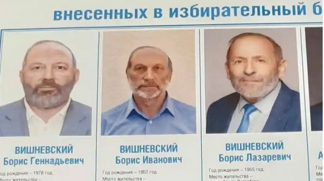 وكان فيشنفسكي، العضو البارز في حزب يابلوكو الليبرالي الذي يترشح لمنصب عام في إحدى مقاطعات سانت بطرسبرغ، يعلم بالفعل أن اثنين من خصومه غيرا مؤخرًا اسميهما إلى "بوريس فيشنفسكي" لإرباك الناخبين. وما لم يكن يعرفه هو أنهما سرقا مظهره أيضًا. وفي ملصق تصويت على مستوى المنطقة، يظهر المرشحون الثلاثة جنبًا إلى جنب، ومن الصعب التمييز بينهم، لأنهم جميعًا يبدون متطابقين تقريبا.