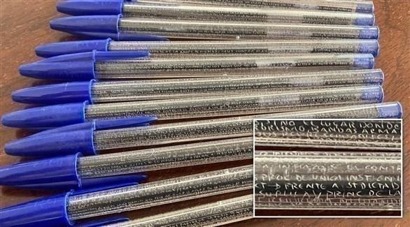 وبحسب موقع "تايمز ناو"، عثرت المعلمة يولاندا دي لوتشي على هذه الأقلام بالصدفة أثناء تنظيف مكتبها مشيرة إلى أن هذه الحادثة في جامعة مالقة وقعت قبل بضع سنوات، حين حاول أحد طلابها الغش في الامتحانات من خلال نقش قانون الإجراءات الجنائية بدقة على 11 قلماً.
