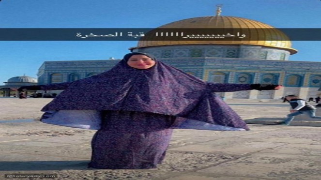بأحمر الشفاه .. شمس الكويتية في باحة المسجد الأقصى