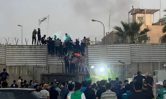 محتجّون عراقيون يقتحمون سفارة السويد في بغداد ويضرمون النار فيها