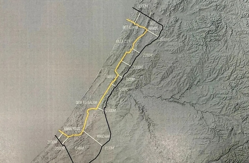 عمان1:أظهرت خريطة كشف عنها الرئيس الأميركي دونالد ترامب على منصته للتواصل الاجتماعي "نروث سوشيال" خط الانسحاب الأولي لقوات الجيش الإسرائيلي من قطاع غزة، في إطار المرحلة الأولى لتنفيذ عملية تبادل الأسرى والمحتجزين.