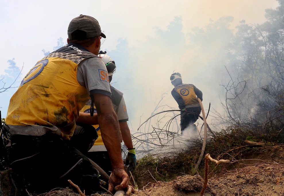 وكانت النيران قد اندلعت منتصف الليلة الماضية، ما استدعى استنفار فرق الإطفاء في الدفاع المدني السوري وأفواج الإطفاء الحراجي، التي واجهت ظروفاً صعبة بسبب اشتداد سرعة الرياح وصعوبة الوصول إلى بعض البؤر المشتعلة.