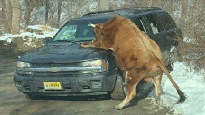 وعندما وصلت سيارة الشرطة إلى مكان الحادث، كانت صاحبة الثور ويندي مكديرموت محاصرة في مركبتها وتبين فيما بعد أن الثور طاردها على طول طريق المزرعة قبل أن يصبح هائجاً ويبدأ بالضغط على غطاء المحرك محطماً السيارة.