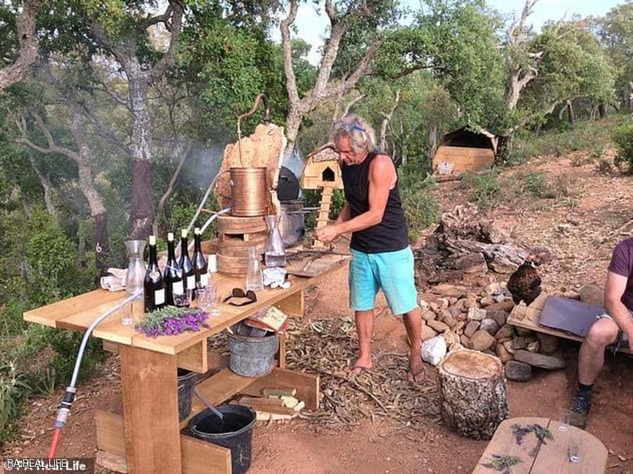 ولكن، كيف يعتاش الزوجان؟ يجيب الرجل الهولندي إنهما يعملان على تربية الخنازير، وبيع محصول أشجار الفلين التي تنمو في الأرض التي يملكانها.